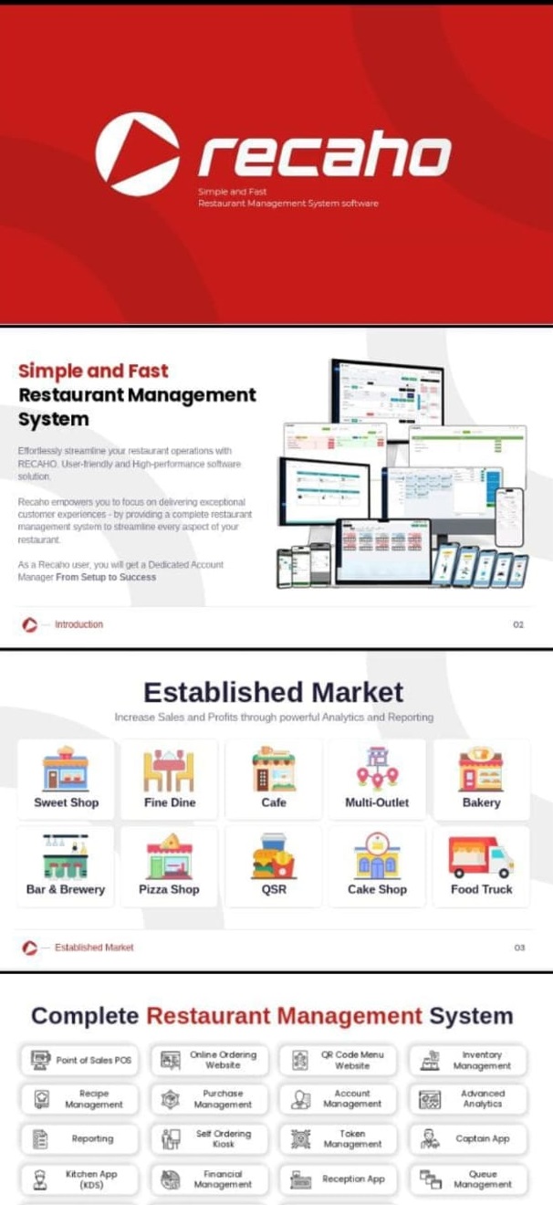 Recaho empowers you to focus ohhsn delivering exceptional customer experiences – by providing a complete Restaurant Management Software to streamline every aspect of your restaurant.aurant operations with RECAHO. User-friendly and high-performance software solution designed for billing in restaurant.